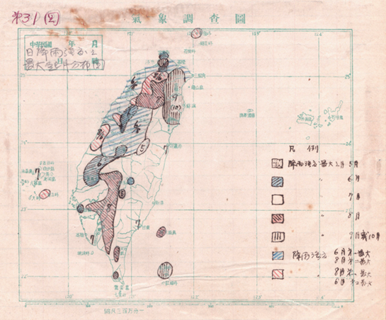 [4] 岡四四亥等 (1947)。《臺灣氣象資料大全-降水》手稿。臺灣省氣象所。