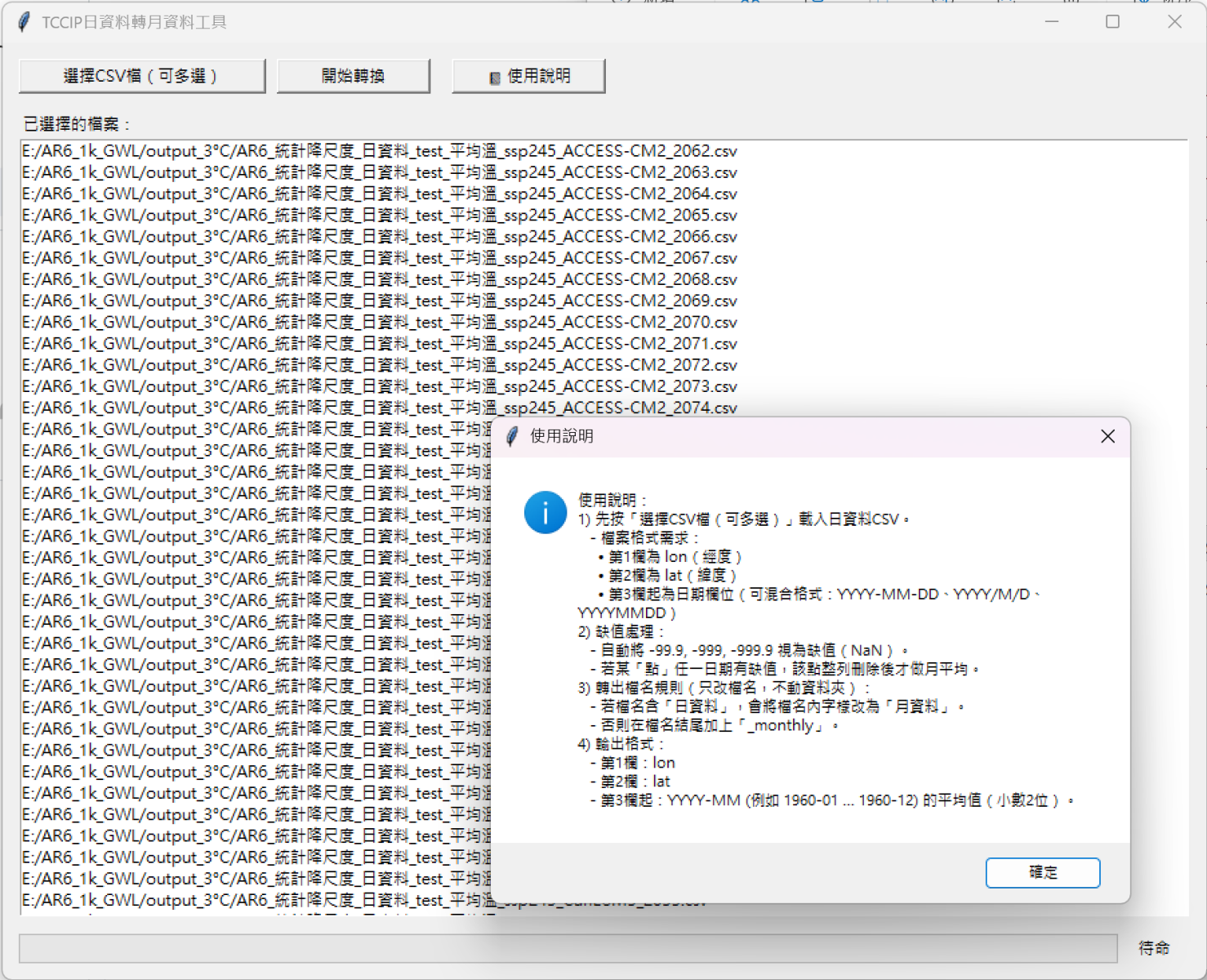 本工具可方便快速轉換所有氣候變遷資料商店上的日資料,歡迎多加利用。
